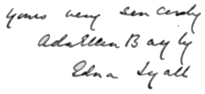 Dictionary of National Biography, 1912 supplement. Ada Ellen Bayly, by Elizabeth Lee. [J. M. Escreet, Life of Edna Lyall, 1904; The Times, 10 Feb. 1903; Athenaeum, 14 Feb. 1903; G. A. Payne, Edna Lyall, 1903; H. C. Black, Notable Women Authors of the Day, 1893, with portrait; private information.] |