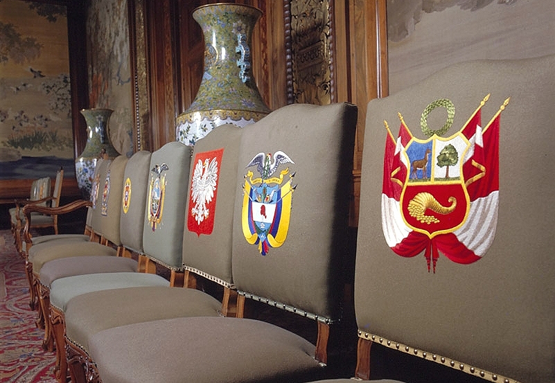 After thoroughly evaluating examples of our embroideries and service, The Peace Palace in The Hague (Holland) chose us for the graphic implementation and hand embroidery of two extinct countries' coat of arms to be used on chairs in the palace. These chairs will be part of a new permanent exhibition and in addition to the present collection.