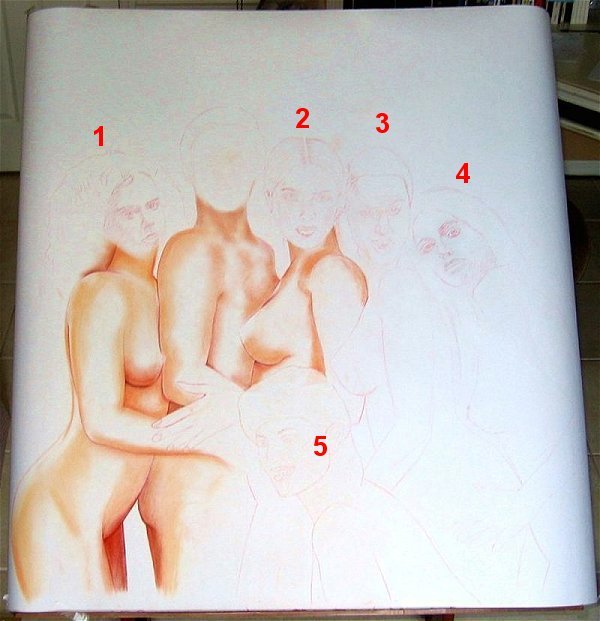 More detail. But, the breasts of the 2 women on the right are almost identical. Therefore