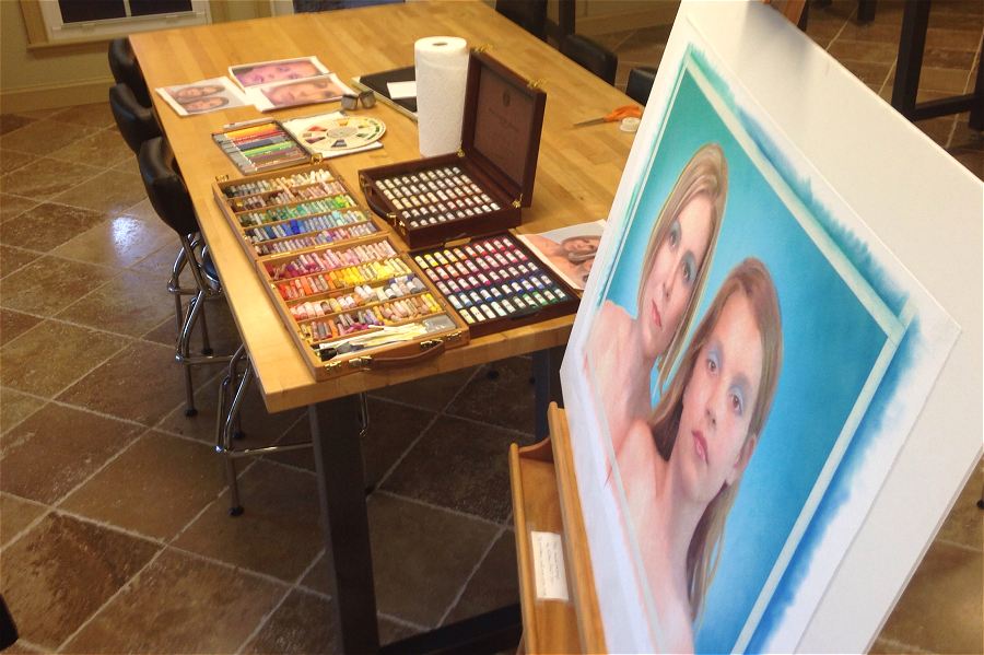 Portrait of Teena and KailaWe moved to a new condo in Destin in the Spring of 2015. Although the condo is not small (2,500 sq.ft.) I do not have a studio to paint in.