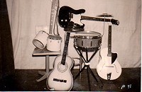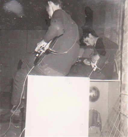 Onze versterker was kapot. Alleen Wim's gitaar aangesloten op de apparatuur de de "Rocking Explosives". We speelden Heathrock Four en The Stranger.