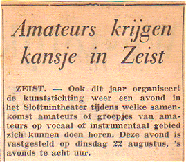 8 augustus. Woerdense Vakantie Week. Amateur Show. Op het Excersitieveld. 3500 personen publiek.