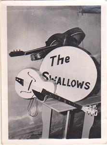 Er moest natuurlijk een drummer bij, maar niemand had een drumstel in Harmelen. Niet getreurd, ze maakten er een. Een fietswiel met een zinken plaat eromheen, een oude banjo voor trommel en een echt bekken. Het leek heel wat uit de verte. Hans van Bemmel werd gestrikt om drummer te zijn. We noemden onszelf "The Swallows".