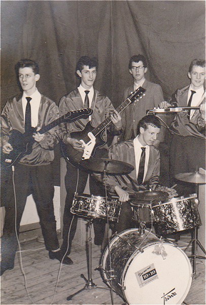 We hadden Cliff Richard & The Shadows zien spelen in de Ahoy Hal in Rotterdam. Ze hadden van die mooie simpele dasjes. Zoiets wilden we ook. Maar hoe moest je zoiets strikken, en met wat? We namen een stukje donkerblauw vilt, knipten het in een V-vorm en knoopten er een stukje elastiek aan. Klaar is Kees. |
