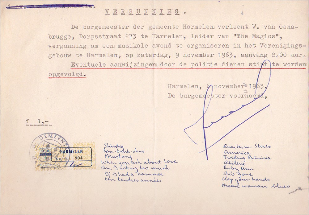 30 april. In opdracht van de Oranjevereniging in Harmelen, een Song Festival georganiseerd in het Verenigingsgebouw.