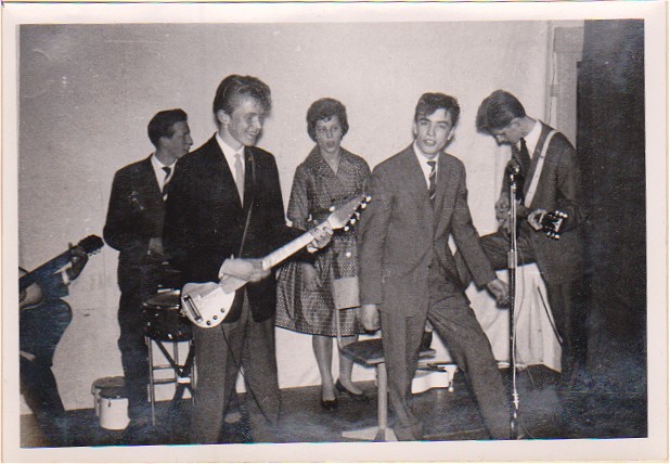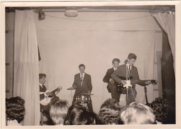 Ons eerste optreden was voor de Gereformeerde Jeugdvereniging bij Korver in Gerverskop. We hadden zelf (met de hulp van Jaap's moeder) witte broeken van bedlaken gemaakt, waar we tijdens het optreden uitbarsten.