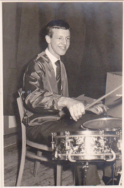 We hadden Cliff Richard & The Shadows zien spelen in de Ahoy Hal in Rotterdam. Ze hadden van die mooie simpele dasjes. Zoiets wilden we ook. Maar hoe moest je zoiets strikken, en met wat? We namen een stukje donkerblauw vilt, knipten het in een V-vorm en knoopten er een stukje elastiek aan. Klaar is Kees. |