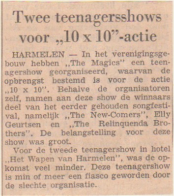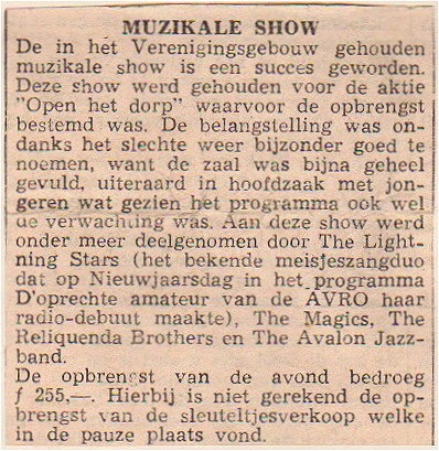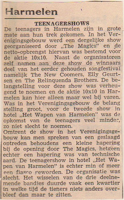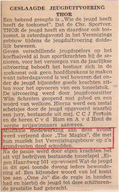 10 februari. "THOR uitvoering, met medewerking van The Magics, die met hun muziek het Verenigingsgebouw op z'n grondvesten deed schudden".